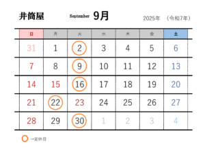 R7.9月定休日 井筒屋